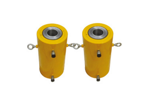 雙作用空心千斤頂:又叫張拉頂、穿心頂、空心柱塞頂,具有操作方便,使用壽命長的特點,廣泛運(yùn)用在預(yù)應(yīng)力施工,橋梁修造,公路及鐵路建設(shè),電廠電站修造,設(shè)備提升,機(jī)械拆卸等方面。中心孔可供電線、鋼筋等穿過,中心孔徑可根據(jù)用戶需要進(jìn)行加工,單向頂為單作用,彈簧回程,適用于行程較短,如要求空心頂行程較大,請選雙作用空心千斤頂。